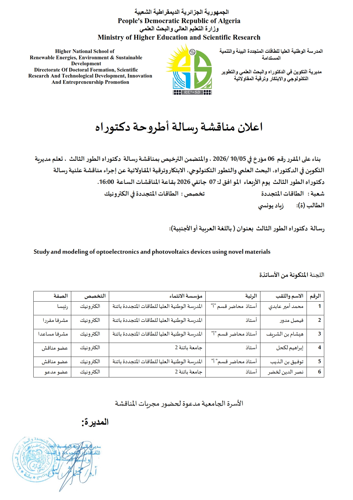 اعلان مناقشة رسالة أطروحة دكتوراه